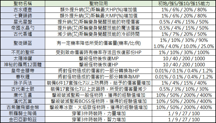 3.聖物最高等級為15,強化至滿等後聖物名稱會變成金色。